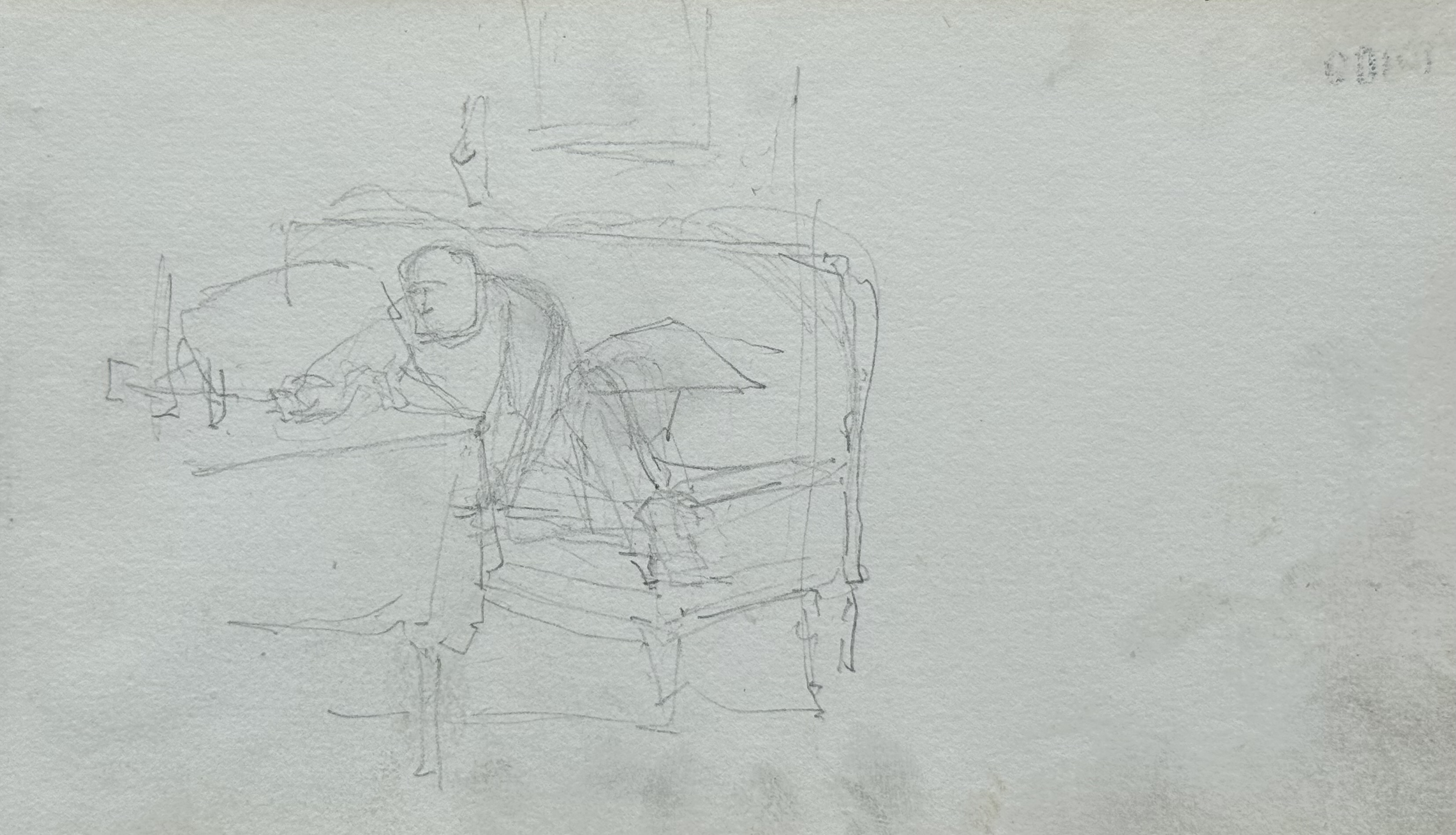 Sheet 10. Sketch of a male figure on a sofa. Paper, pencil; 11.4 × 19.5 cm