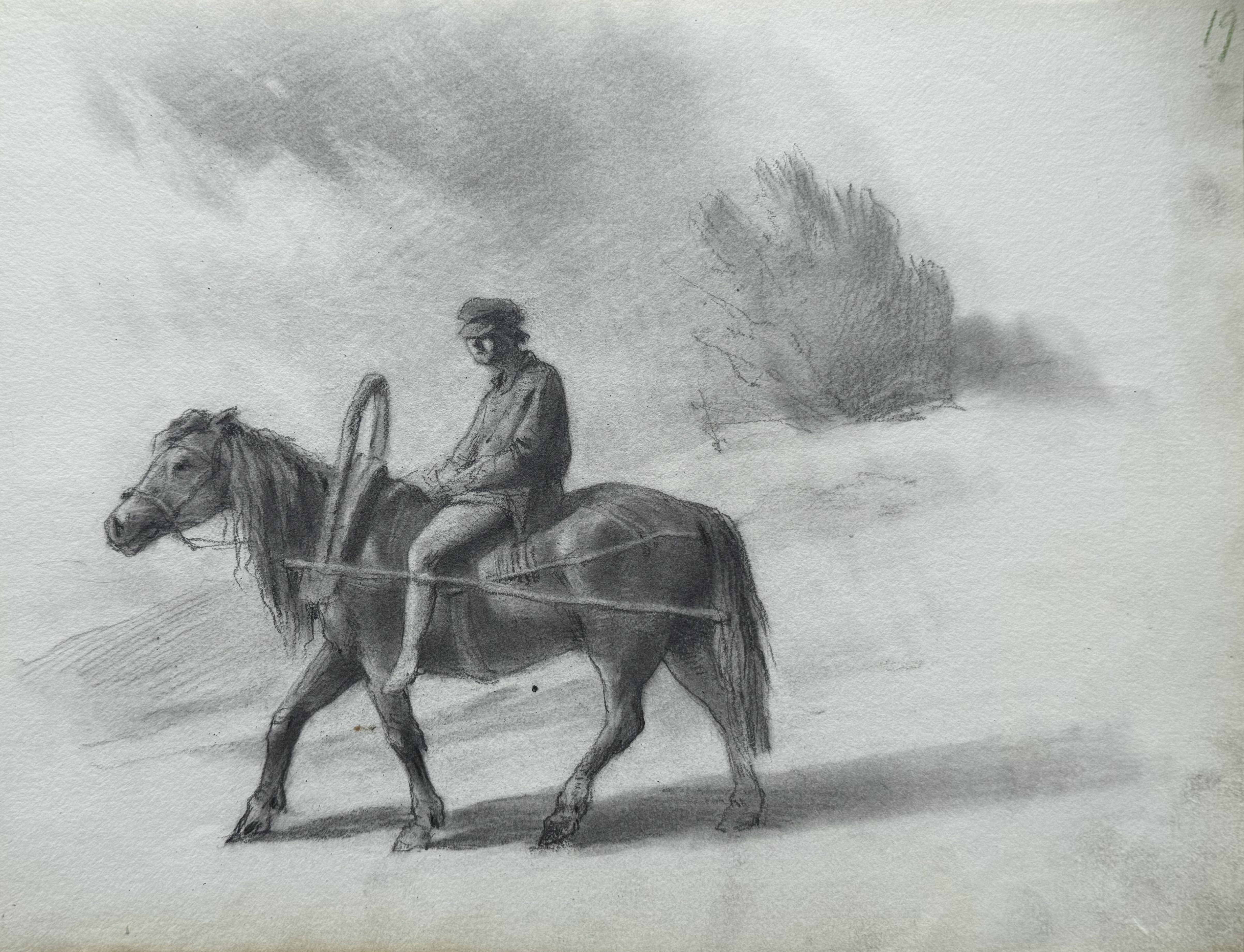 Арк.18. Вершник на тлі пейзажуАрк.18. Вершник на тлі пейзажуПапір, олівець; 20х26Sheet 18. Horseman against a landscape backgroundPaper, pencil; 20 x 26 cm