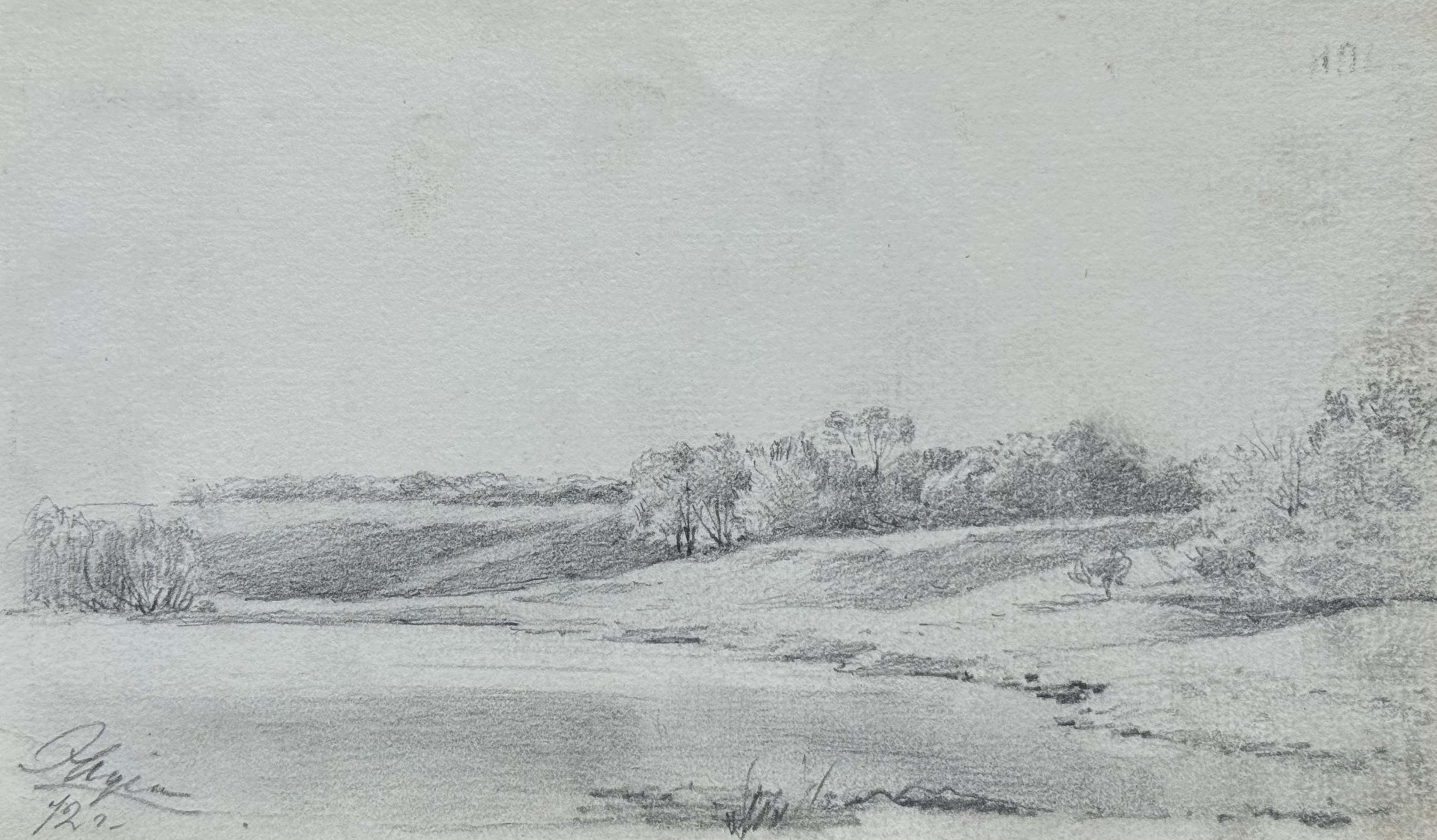 Арк.9. ПейзажАрк.9. Пейзаж. Зліва унизу: Август 72 г.Папір, олівець; 11,4х19,5Sheet 9. Landscape. Bottom left: August 72Paper, pencil; 11.4 × 19.5 cm
