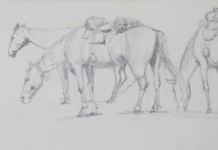 Sheet 19. Four horses that were saddled