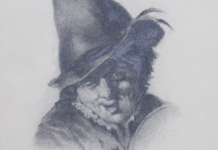 Арк. 20. Погрудне зображення чоловіка у високому капелюсі з пером