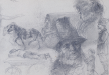 Арк. 1. Начерки чоловічих фігур і голів (серед них фігури українського селянина, старого єврея, чоловіка на возі; голова чоловіка з довгими вусами