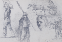 Sheet 1 (on the back). Water carrier and sketches of male figures
