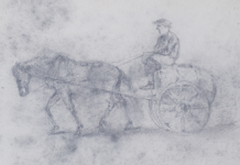 Арк. 1 (на звороті). Водовоз і начерки чоловічіх фігур