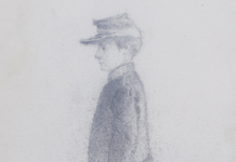 Sheet 4. Sketches of a boy in military uniform and a man...