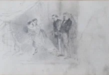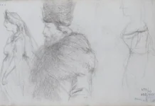 Арк.10 (на звороті). Чоловіча та жіночі фігури (начерки)