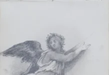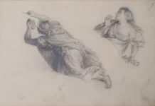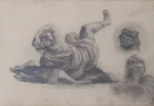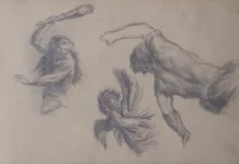 Арк.9. Дві чоловічі фігури та фігура янгола (начерки)