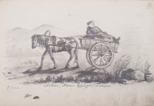 Арк. 13 (на звороті). Кінь, що везе віз. Напис: «Огурец. Зелень». (Огірок. Зелень)