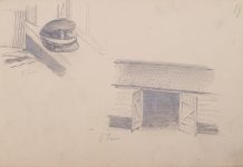 Sheet. 16. The Shed (a sketch). Inscription: "From Pargov". June 13