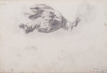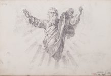 Арк. 5 (на звороті). Бог Саваоф, який ширяє серед хмар (начерк)