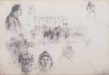 Арк. 6. Група людей; окремі фігури та голови; кінь (начерки)