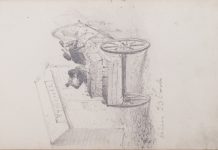 Author's inscription: "watched" (seen). June 23. Paper, pencil; 17.8x27
