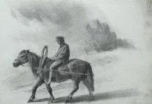 Папір, олівець; 20х26Sheet 18. Horseman against a landscape background
